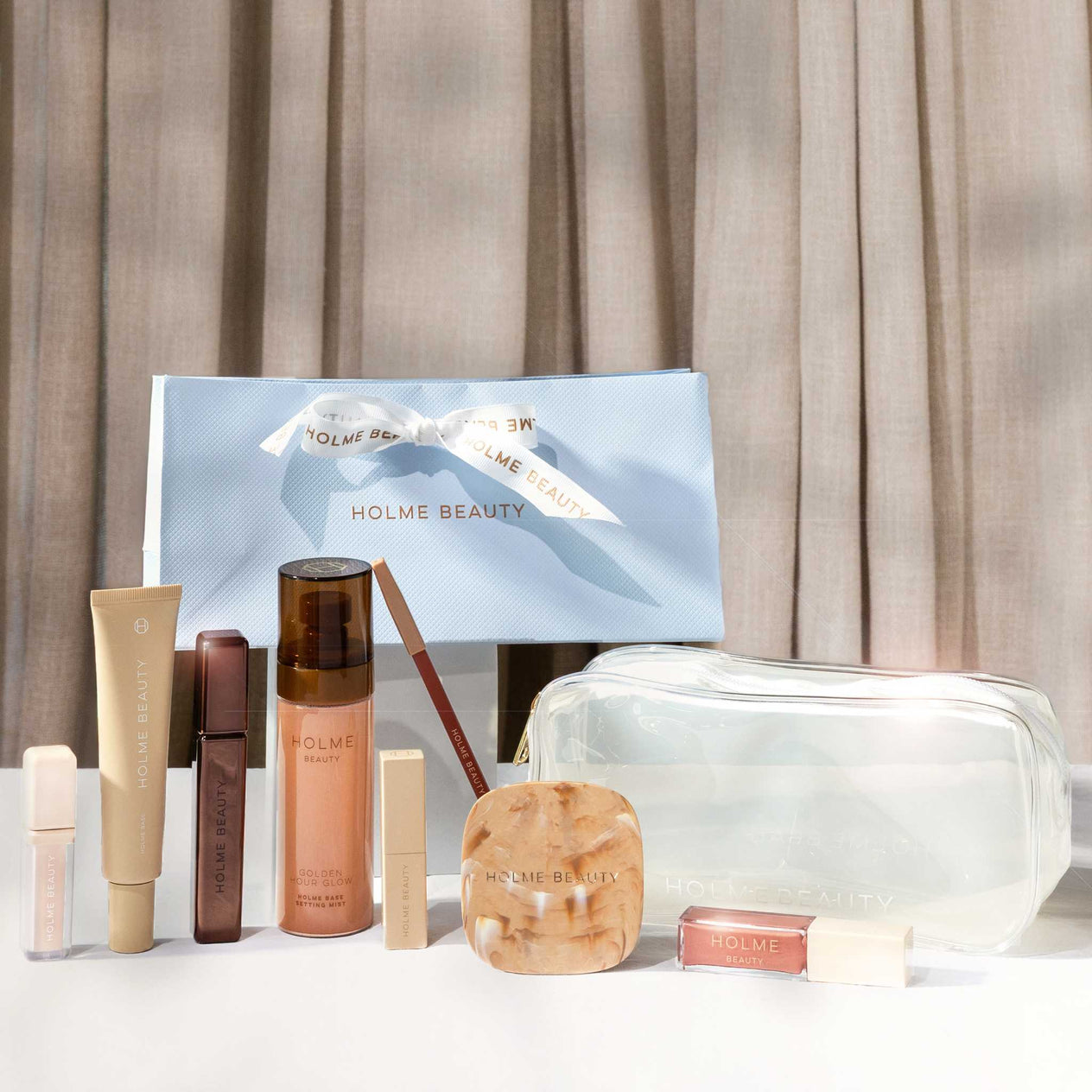 Designed to cover all your application needs, the Holme Set features our best-selling complexion, lip, and eye products, alongside a limited edition cosmetics bag.