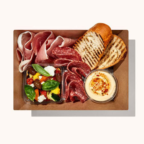 Regular Grazing Box (a nut free box made up of a selection of cold meats, cheese, dips, crackers, fruit & dark chocolate)
